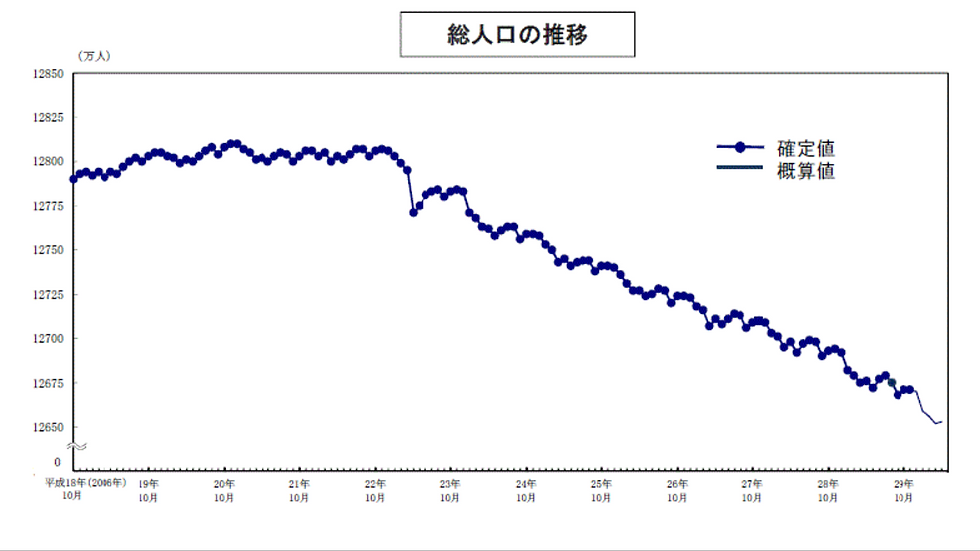 65歳未満の人口は減少し、65歳以上の人口は増加しています。